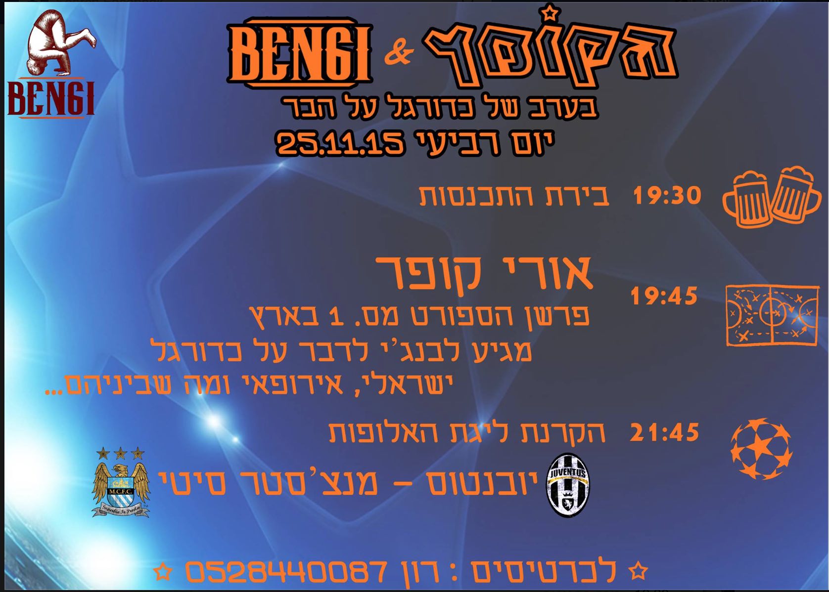 מסתבר שאורי קופר מגיע לתת הרצאה לבנגי לדבר על כדורגל ישראלי ואירופאי ומה שבניהם.